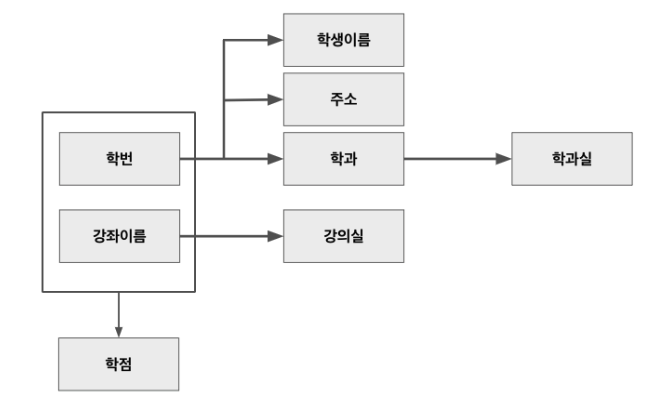 • 결합 규칙: 학번 -> (학생이름, 주소), 학번 -> (학생이름, 주소, 학과)
